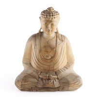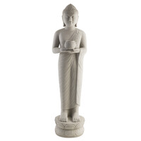 The statue, depicting Buddha, is cast in resin. Resin is a mixture of polyester resin and floating chalk. Resin products are very precisely crafted with attention to every detail.