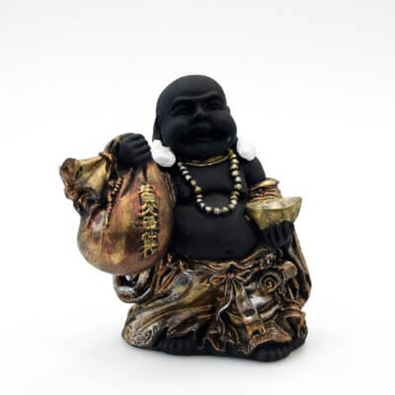 Hotei (also Budai) was a Chinese monk who lived in the 10th century AD. He is depicted with a large belly and a sack full of sweets, a ball of wealth or gold ingot.His presence symbolizes success, wealth and prosperity. It is said that Hotei carried sweets in a sack thrown over his shoulder, which he distributed to poor children during his wanderings. He only took money from Zen monks. Once a monk asked him what the meaning of Zen was. Hotei dropped his bag saying "How can one know Zen?" Then he picked up the bag and continued his journey.
