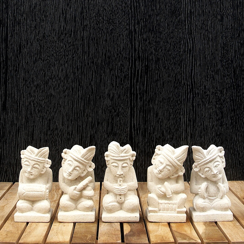 Stone set of five musicians playing different instruments. The statues are handmade on the Indonesian island of Bali.