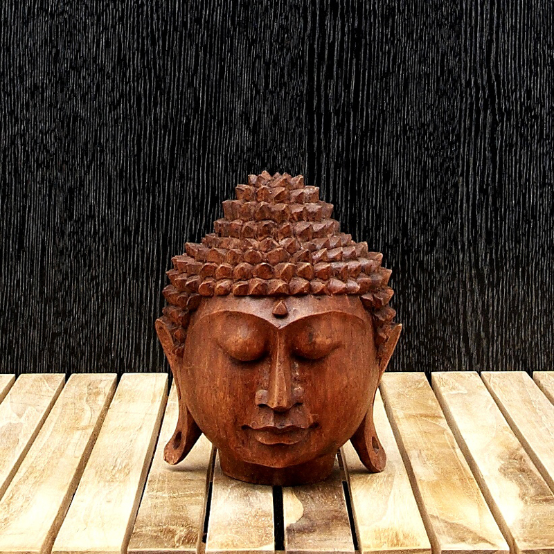 Product description Statuette Wood Buddha Head 15 cm
