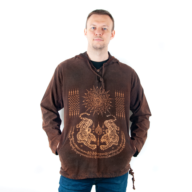 Sweatshirt with Hood Mirror Tiger XL Brown