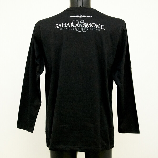 Black t-shirt made of cotton with inscription Do You Hookah on its front side and logo SAHARA SMOKE on the back side. Long sleeve, size XL.
