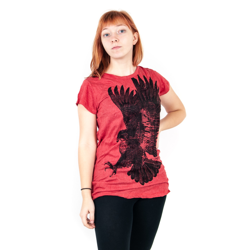 Women's cotton T-shirt with SURE Eagle print in red, size L