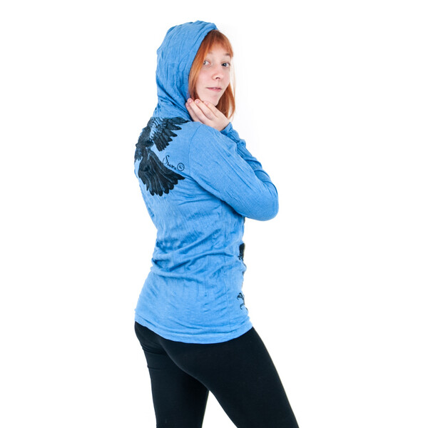 Women's long sleeve cotton T-shirt with SURE Eagle print in blue, size L