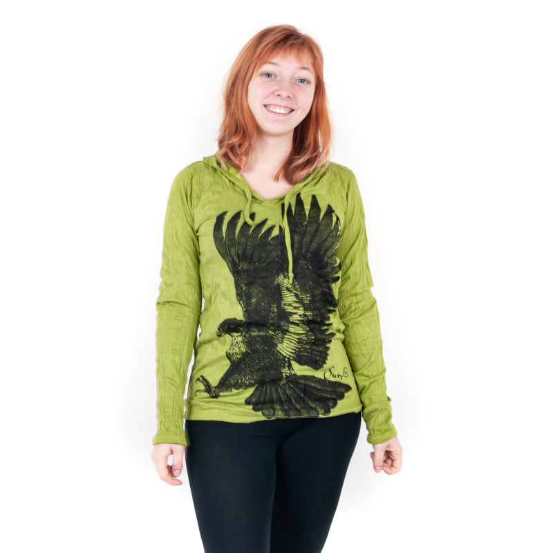 Women's long sleeve cotton T-shirt with SURE Eagle print in green, size L