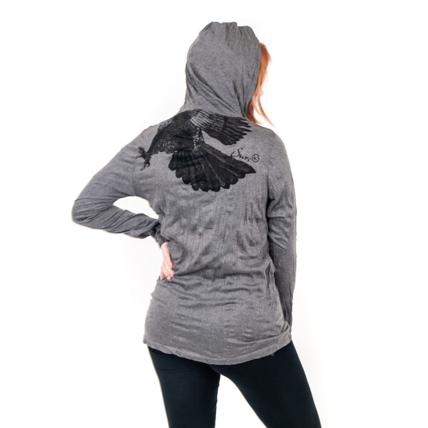 Women's long sleeve cotton T-shirt with SURE Eagle print in grey, size L