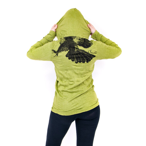 Women's long sleeve cotton T-shirt with SURE Eagle print in green, size S