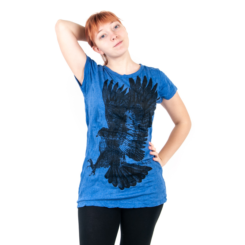 Women's cotton T-shirt with SURE Eagle print in blue, size M