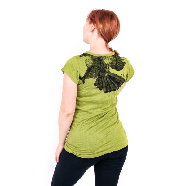 Women's cotton T-shirt with SURE Eagle print in green, size M