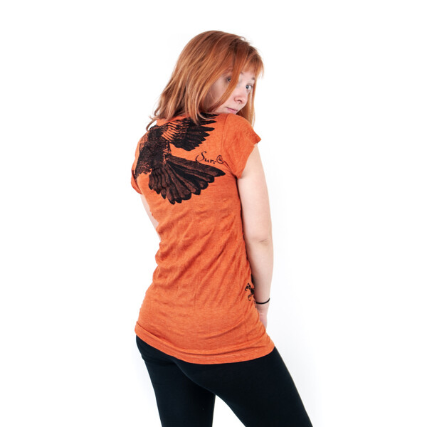 Women's cotton T-shirt with SURE Eagle print in orange, size M