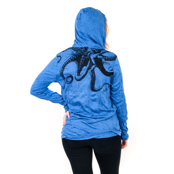 Women's long sleeve cotton T-shirt with SURE Octopus print in blue, size S