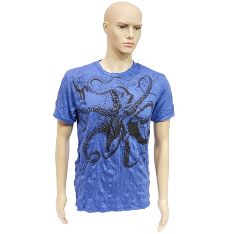 Cotton T-shirt with SURE Octopus print in blue, size XL