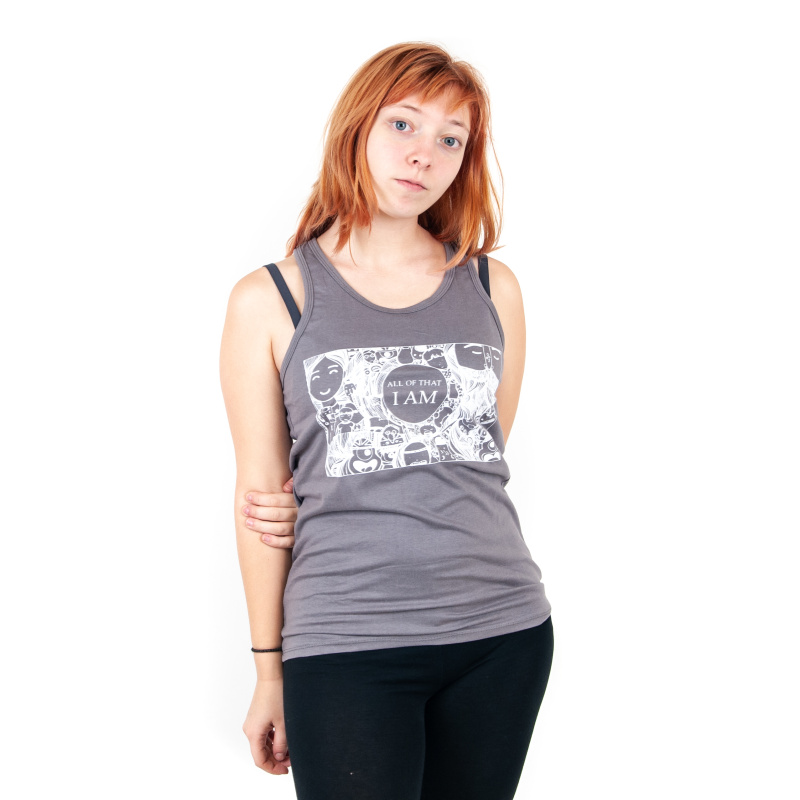 Women's tank top with print and positive mantra I AM ALL OF THAT in grey, size M
