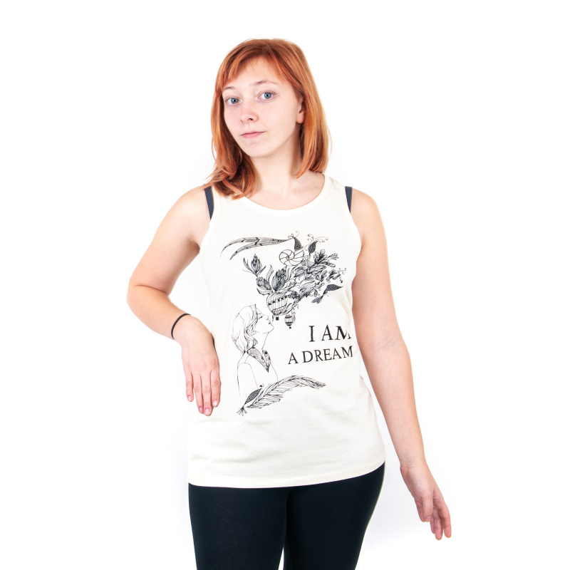 Women's tank top with print and positive mantra I AM A DREAM in beige, size L