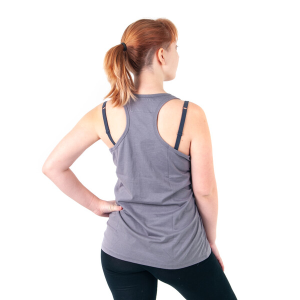 Women's tank top with print and positive mantra I AM INFINITE in grey, size XL