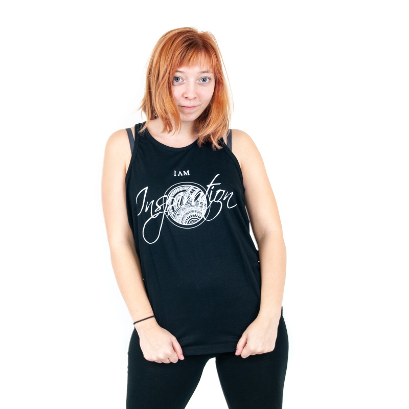 Women's tank top with print and positive mantra I AM INSPIRATION in black, size L