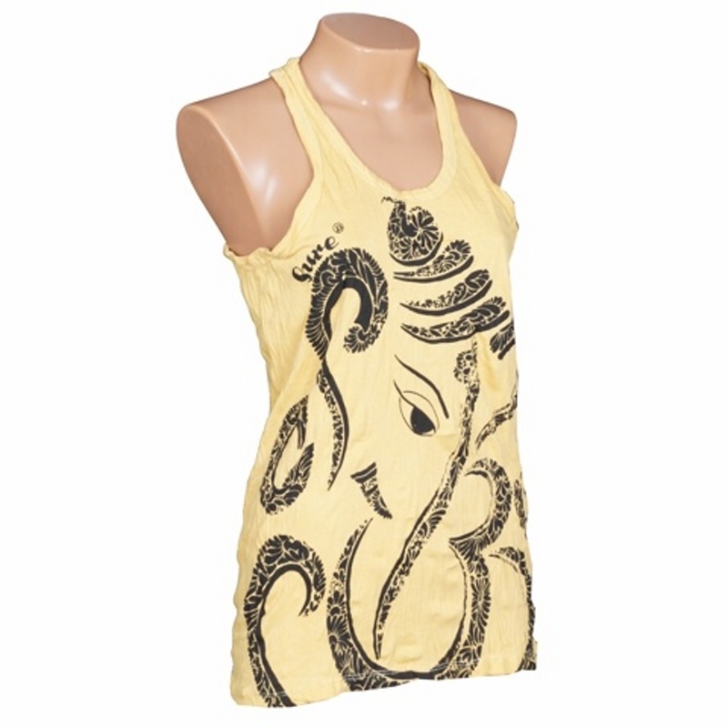 Women's printed cotton tank top SURE Ganesh in yellow, size L