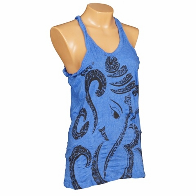 Women's printed cotton tank top SURE Ganesh in blue, size M