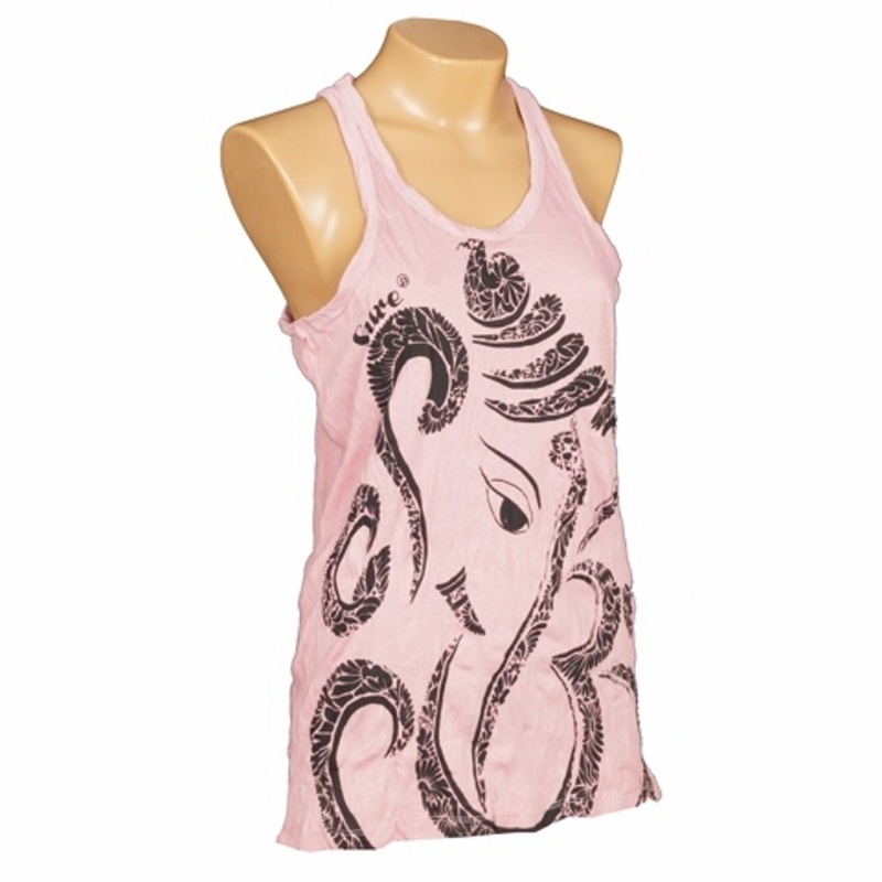 Women's printed cotton tank top SURE Ganesh in pink, size M