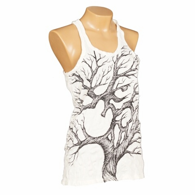 Women's cotton tank top with SURE Tree Ohm print in white, size M