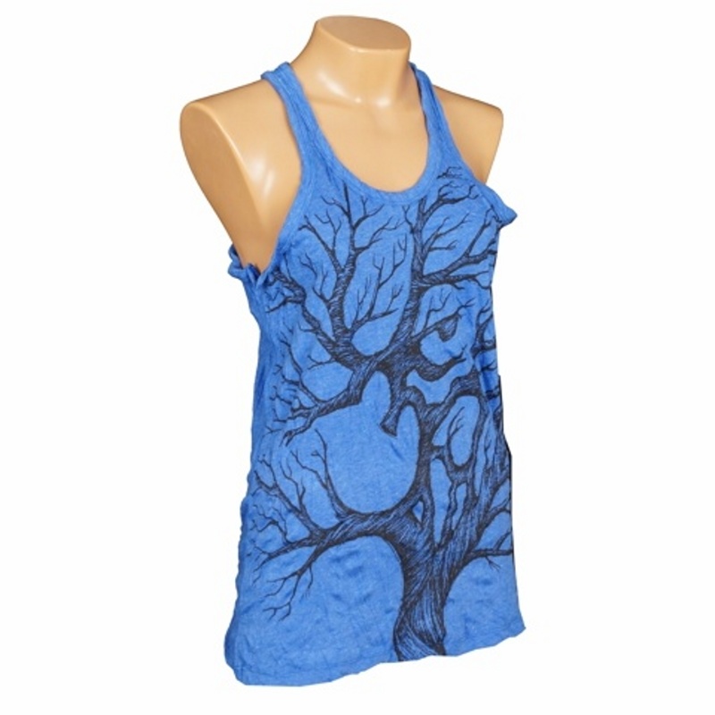 Women's cotton tank top with SURE Tree Ohm print in blue, size S