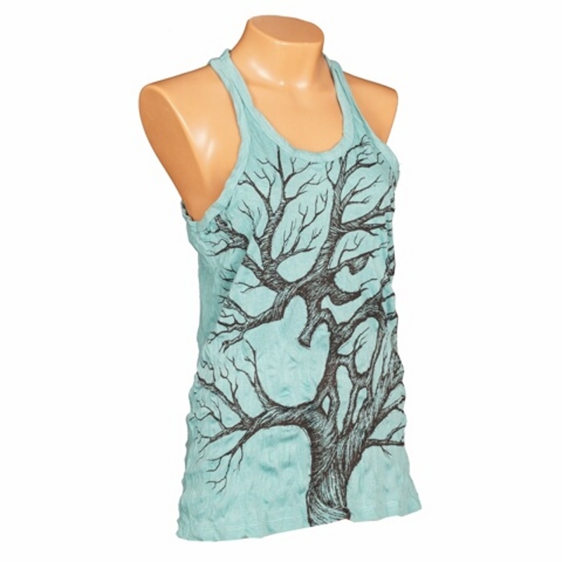 Women's cotton tank top with SURE Tree Ohm print in light blue, size S
