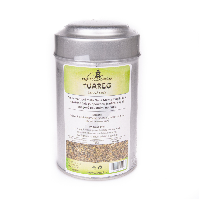 Tuareg - the drink of desert nomads is composed of gunpowder tea and Nana - Moroccan mint. Moroccan mint has a beneficial effect on the digestive system, promoting digestion. Excellent refreshing tea with strong stimulating effects. Tuareg is drunk moderately to strongly sweetened.
