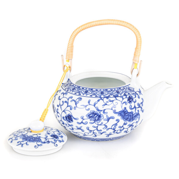 The teapot includes a coarse strainer on the inner side, preventing larger leaves from passing through the pouring spout of the teapot.