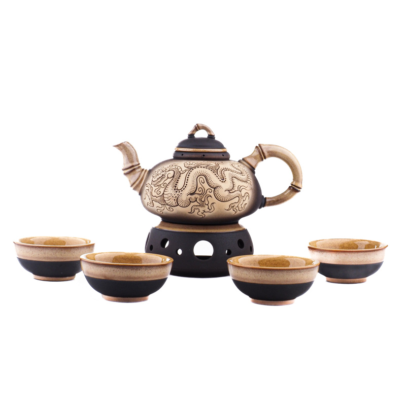 Product description Tea Set Dragon Large Black - 4 Teacups