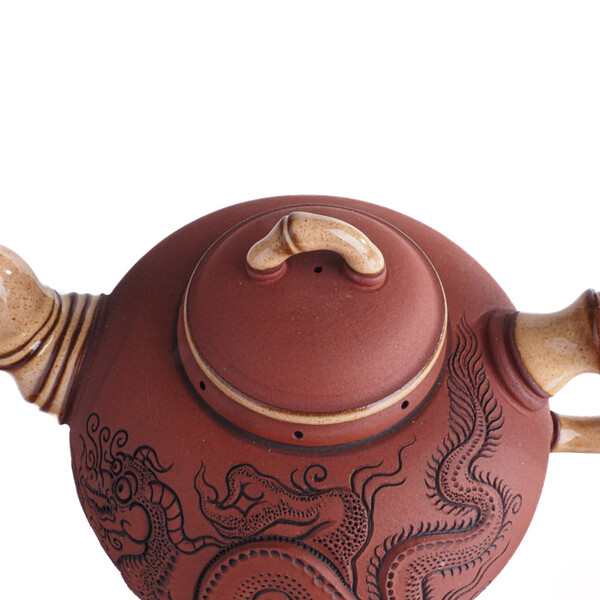 Tea set Dragon red - teapot with an internal strainer+ four cups, 400 ml