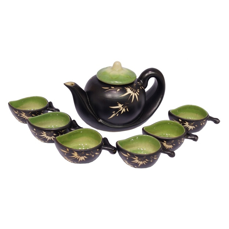 Decorated tea set from Vietnam Oanh with six teacups.