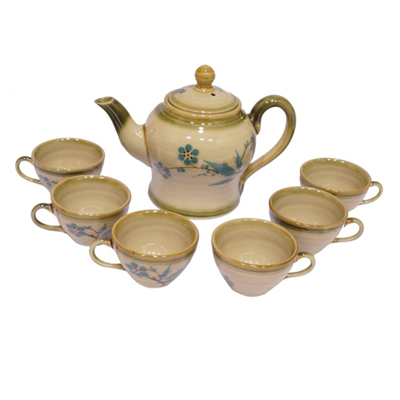 Decorated tea set from Vietnam Vé with six teacups.