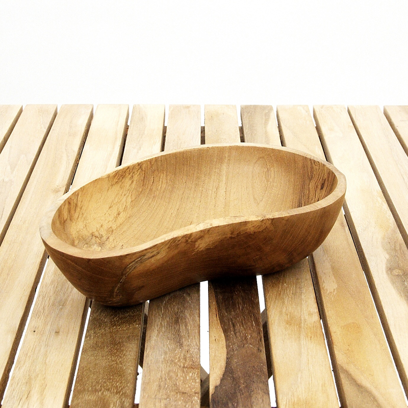 The season doesn't have to be monotonous. It doesn't have to be monochromatic. It doesn't even have to be porcelain or glass. On the contrary, natural materials will brighten up your kitchen and dining room. It stands out even more when it has a novel design. It is a hand-carved original made of teak, created by master carpenters on the island of Bali.