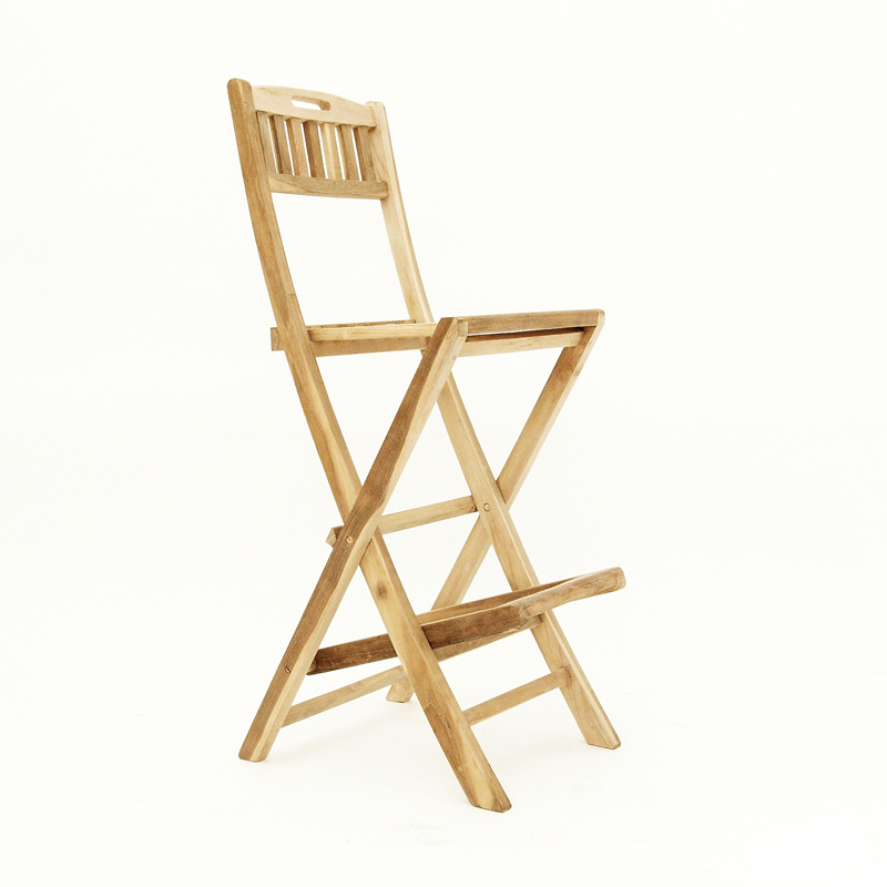 Teak folding bar stool fits wherever you want it. Just keep in mind that for outdoor use, the chair requires additional treatment, which will withstand the rigors of the weather. Since the chair is made of teak, we recommend using products designed for tropical hardwoods.