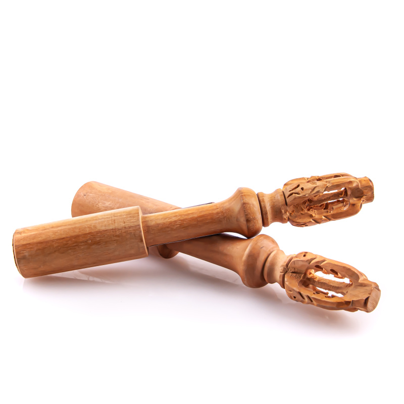 Tibetan bowl mallet, small and medium size, light soft wood, with decorative carved dorji