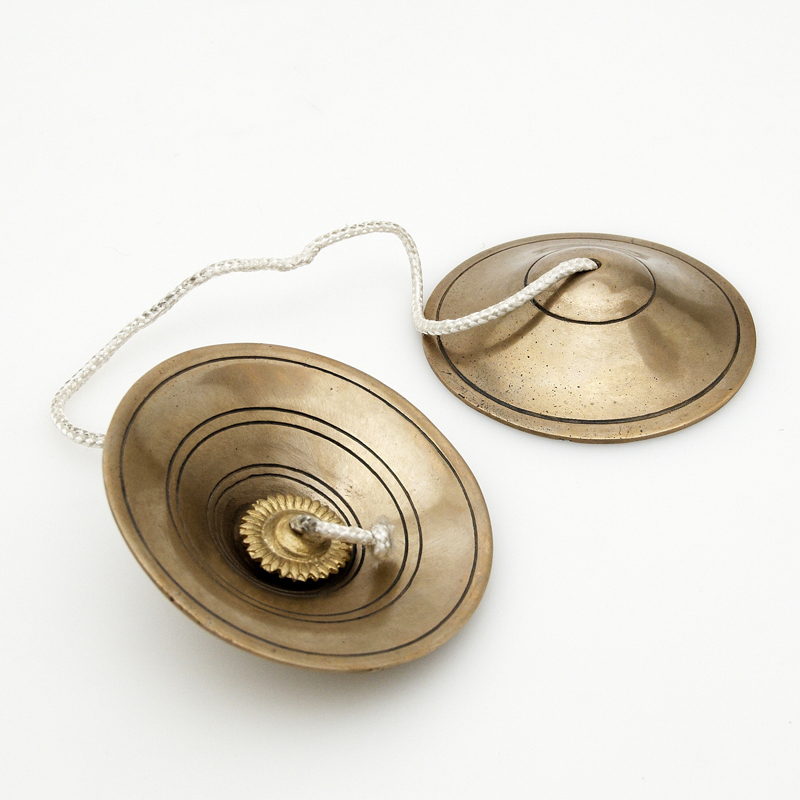 The sonorously picturesque ancient musical instrument of Tibet has a gentle but very penetrating sound that draws one's attention to the "here and now". The instrument consists of two small cymbals cast from multiple metal alloys, joined by a thin strip of leather.
