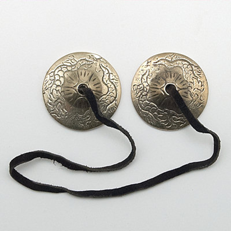 The sonorously picturesque ancient musical instrument of Tibet has a gentle but very penetrating sound that draws one's attention to the "here and now". The instrument consists of two small cymbals cast from multiple metal alloys, joined by a thin strip of leather.