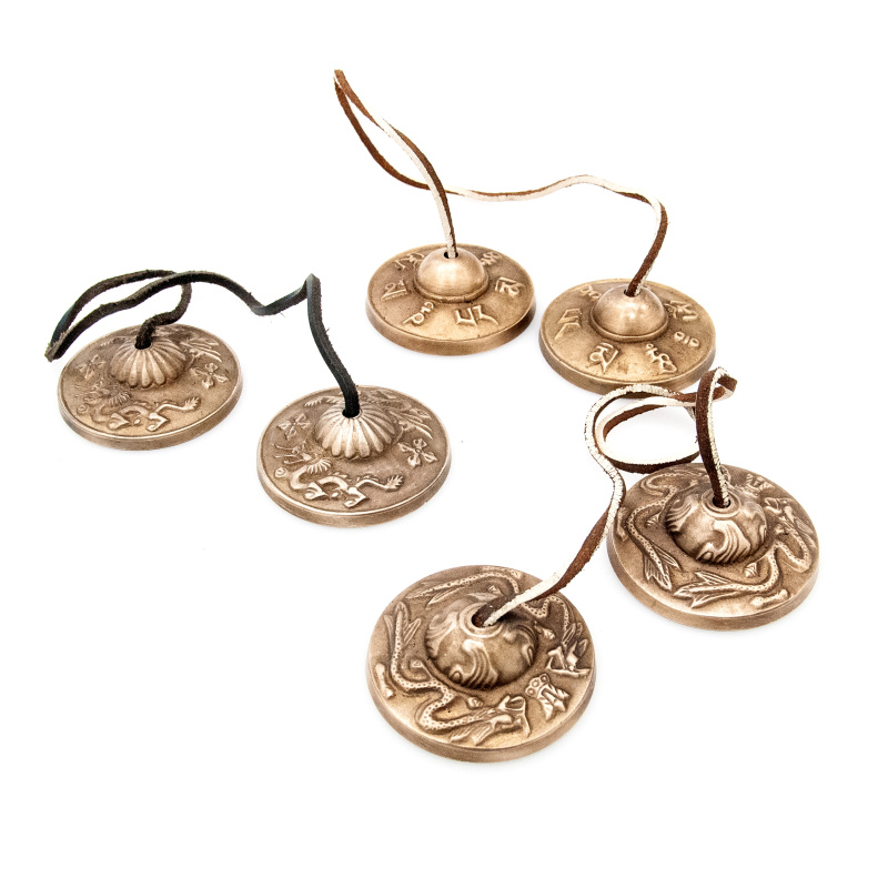 The sonorously picturesque ancient musical instrument of Tibet has a gentle but very penetrating sound that draws one's attention to the "here and now". The instrument is made up of two small cymbals cast from multiple metal alloys, joined by a thin strip of leather.
