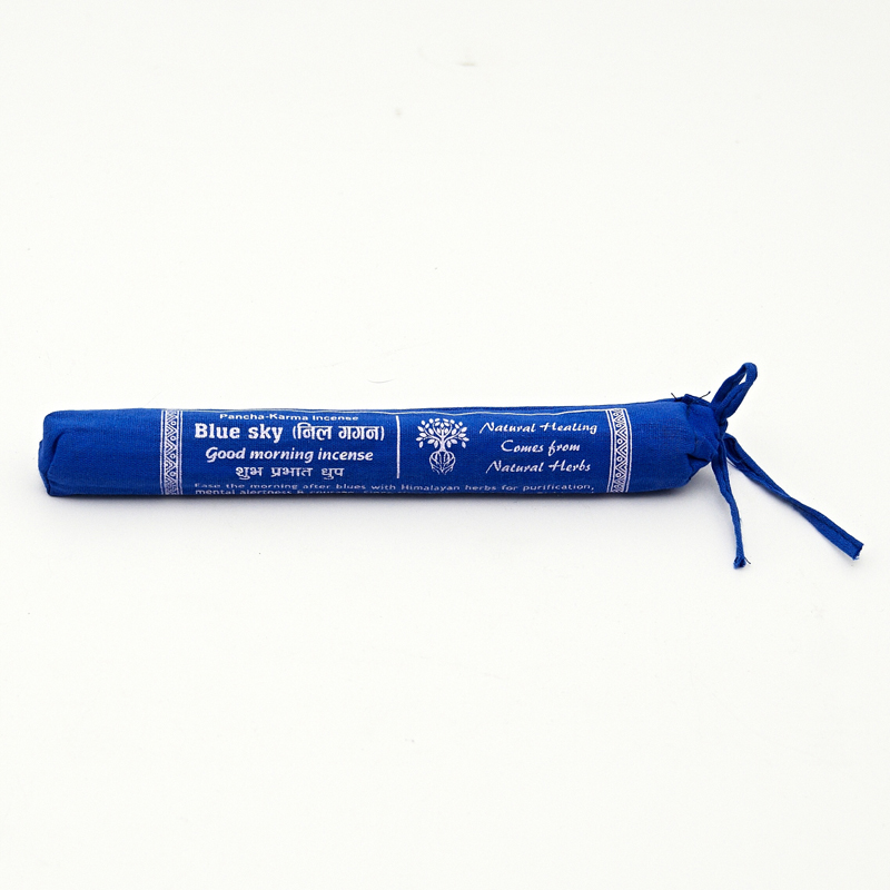 Pancha Karma - Blue Sky Tibetan Scented Sticks are made from specially blended herbs found in the Himalayan mountains. This blend contains 46 natural herbal ingredients. Pancha Karma - Blue Sky scented sticks purify, induce a sense of courage and mental alertness.