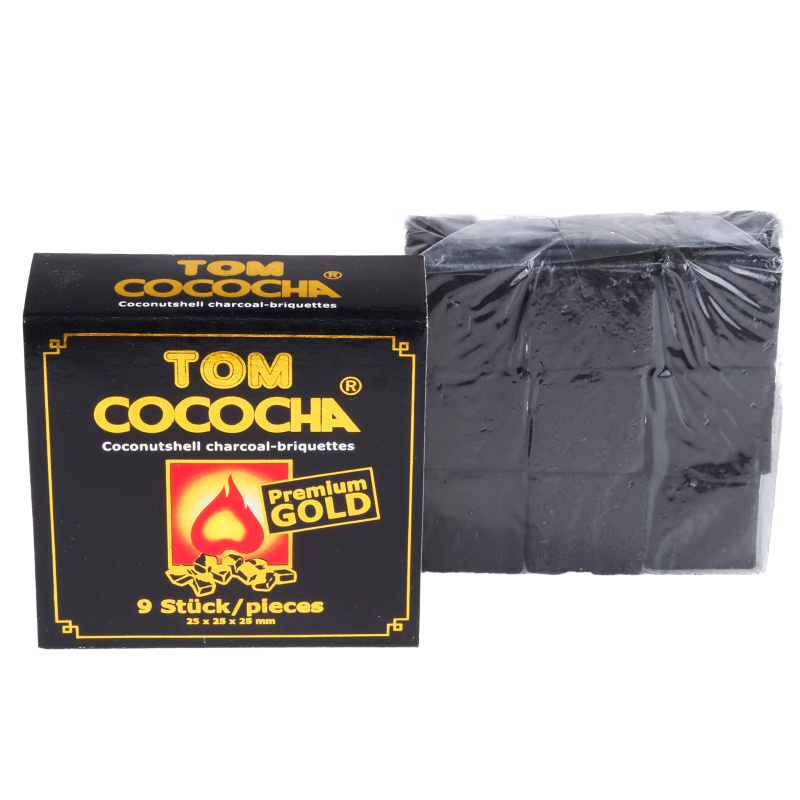 Natural coconut charcoal for smoking hookah or barbecue Tom Coco is made from coconut shells, which are a by-product of coconut oil production. It is a 100% natural and organic product and no chemicals were used in its production and not a single tree was cut down! Tom Coco charcoal burns beautifully without annoying smell and smoke, it also has a higher calorific value (up to 2x longer burning time) than other common charcoal. The residual ash content is up to 80% lower than other conventional coals and is only 3% of its content in total. Tom Coco Gold has a very high solid charcoal content, averaging 85%.