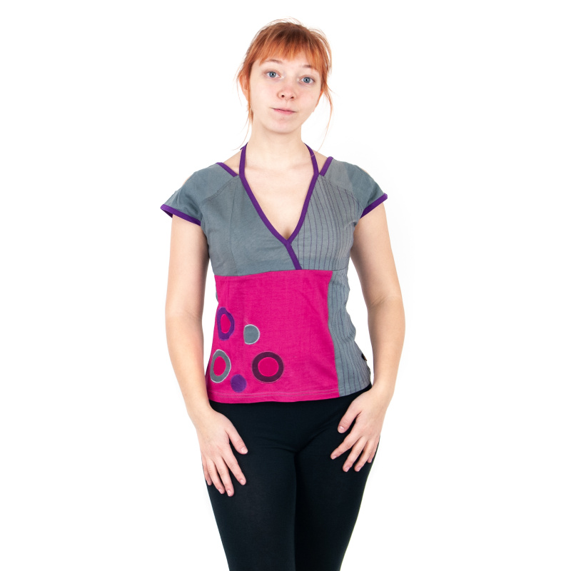 Cotton women's top with circle motifs and drawstrings, Bamboo's 08 Summer 2014, size M