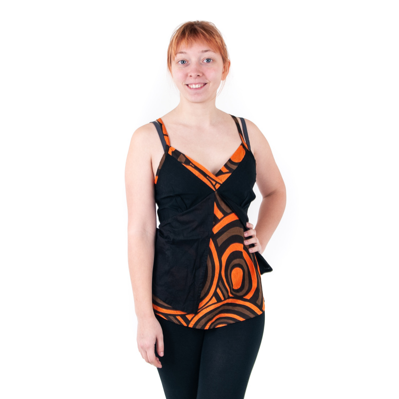 Elegant summer blouse with elasticated back and drawstrings to tie behind the neck.
