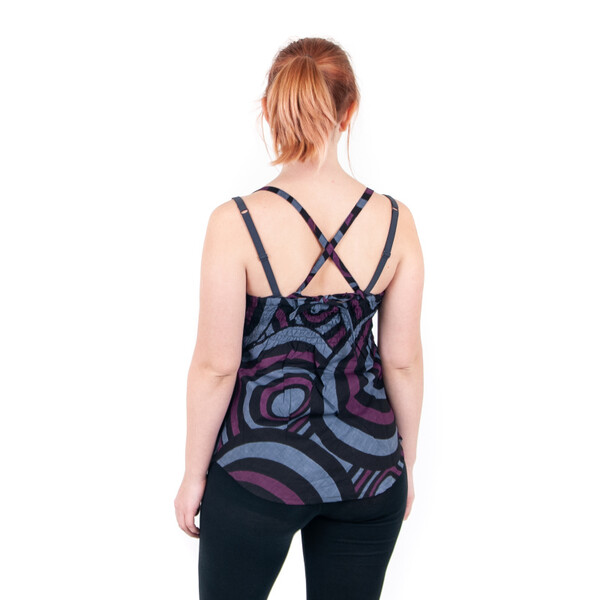 Elegant summer blouse with elasticated back and drawstrings to tie behind the neck.