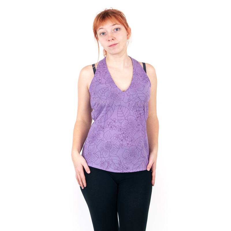 Elegant and lightweight cotton top blouse Jasmine decorated with flowers, size XL, colour purple