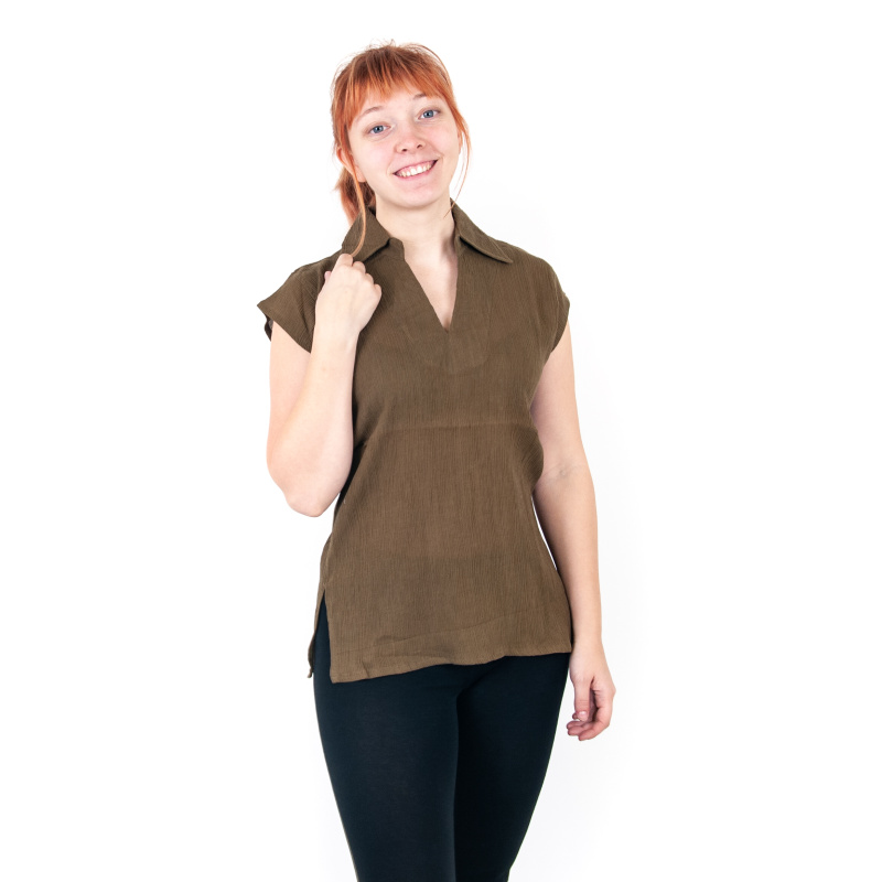 Stylish and comfortable cotton top blouse Leona with slits, size XL, colour khaki