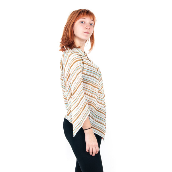 Elegant blouse with flared three-quarter sleeves and collar will become a favourite piece in your wardrobe. The soft cotton fabric is ideal for hot summer days and provides a comfortable feel.
