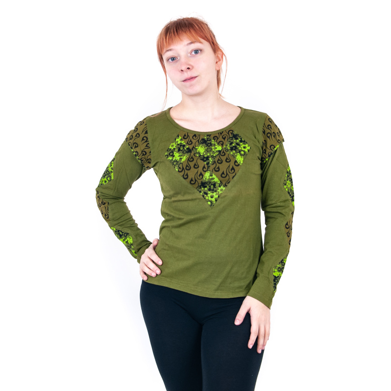 Top with interesting patterns and long sleeves Joy 07 in khaki, size XL