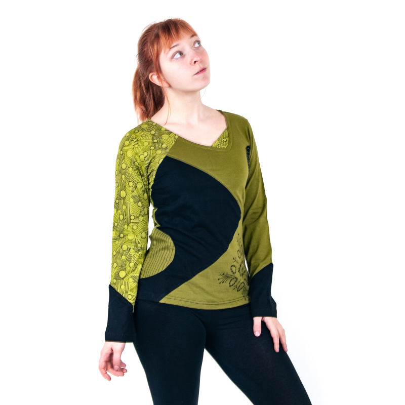 Top with interesting cut and long sleeves Joy 11 in green, size L