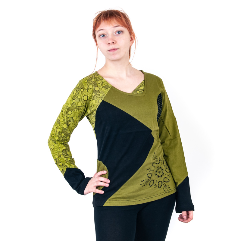 Top with interesting cut and long sleeves Joy 11 in green, size M