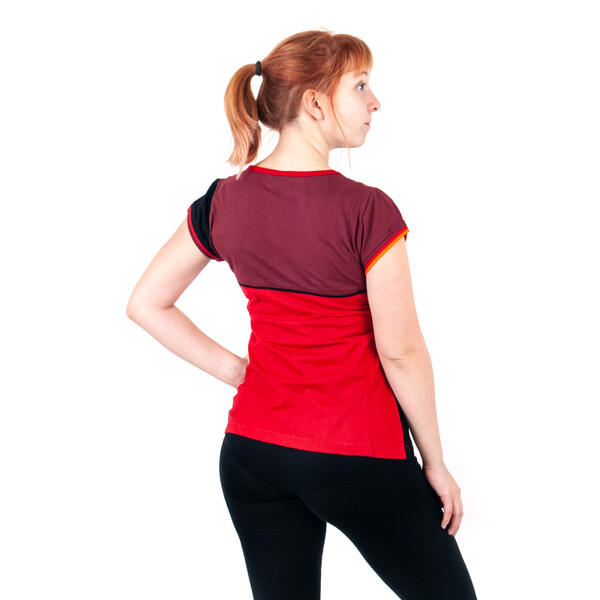 Red top with floral motif and small zipped pocket Joy 12, size M